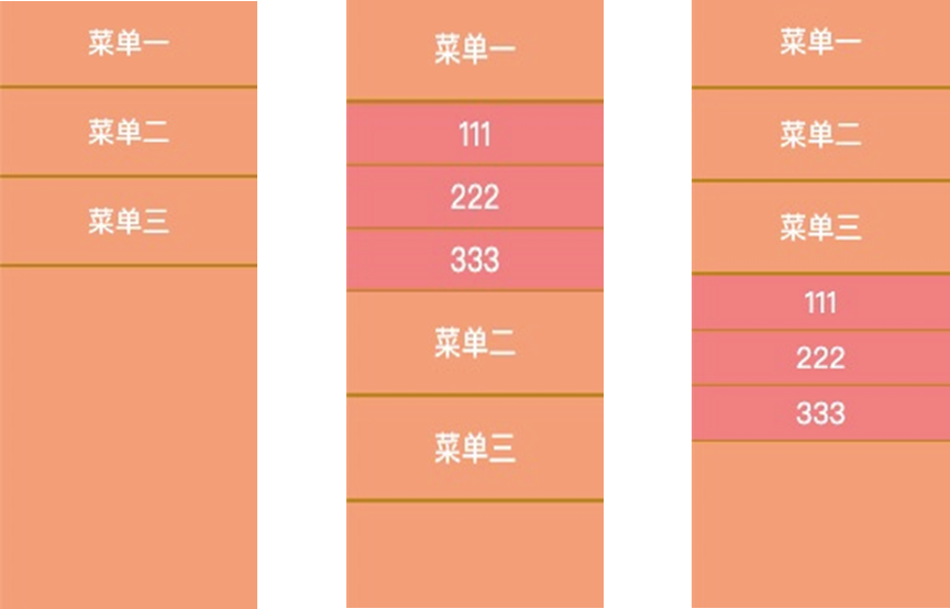 再点击菜单三,菜单一的列表隐藏,显示菜单三的列表;