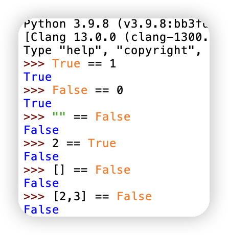 ==是比较值是否一样 在python中 True等价于1 False等价于0 所以你会看到以下的测试结果