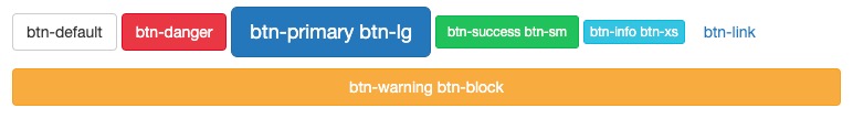 按钮颜色 btn-default btn-danger btn-primary btn-success btn-info 按钮链接 btn-link 按钮大小 btn-lg btn-sm btn-xs