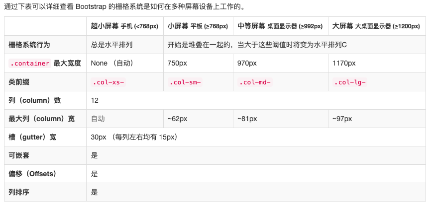 响应式布局 col-xs- col-sm- col-md- col-lg-