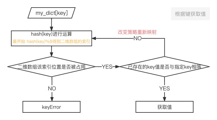 my_dict['xx']运算得到索引后,发现该位置被占用但该位置的key就是'xx',直接获取到值!