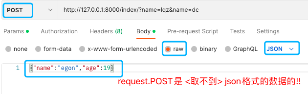 注意!POST请求提交到Django后端的json格式的数据,request.POST是接受不到的!!!