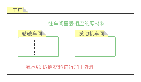 工厂 -- OS ; 车间 -- 进程 ; 流水线 -- 线程.