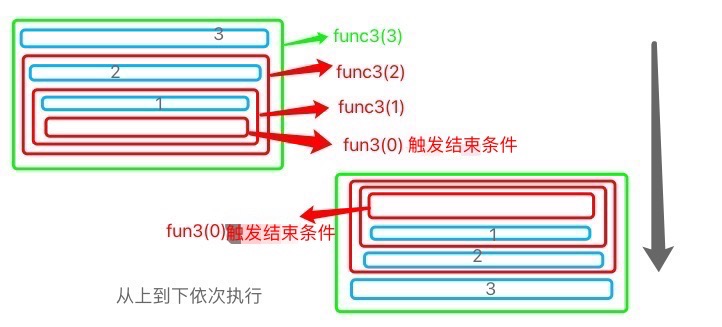 Ps: 图中大框表示函数的执行,里面的蓝色小框表示print语句..