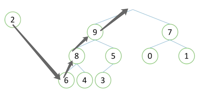 从哪里开始找呢?从右边开始找. 8 9都比5大,2比5小,2放到了左边的空位上!