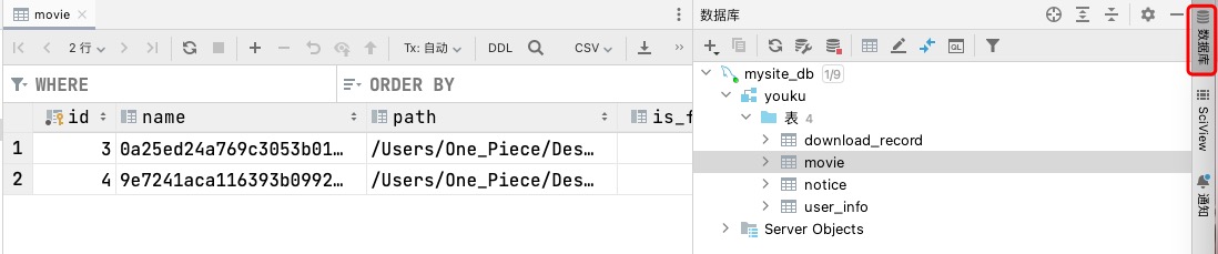即db为"db2",接着遍历app01.models里的所有表,表名为"role","goods"的在数据库db2中生成