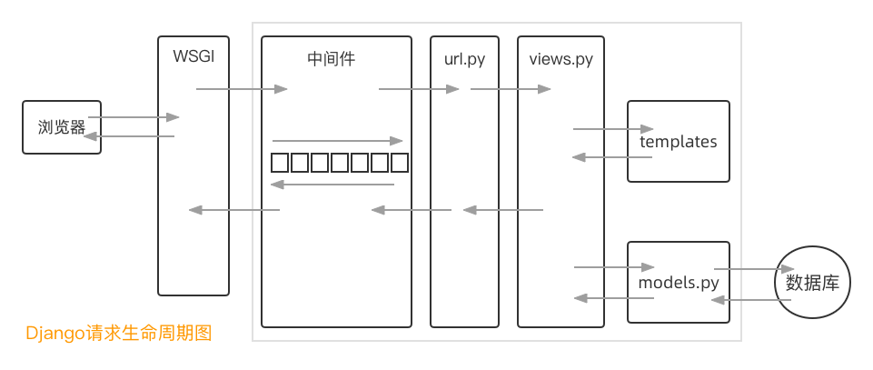 在执行过程中,需要模版就去模版层,需要数据就通过数据库要数据.