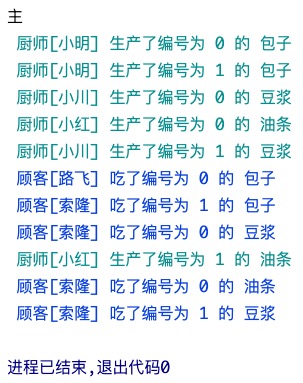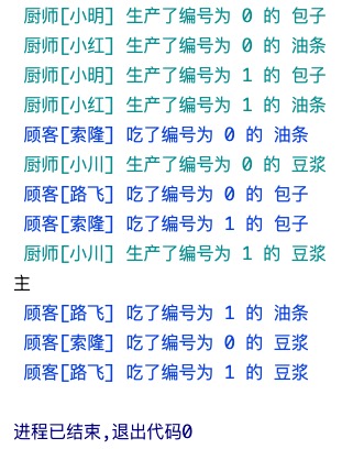 来,琢磨下运行结果存在什么问题? 生产者小红生产的编号为1的油条没有被消费者吃掉,程序就退出了!!