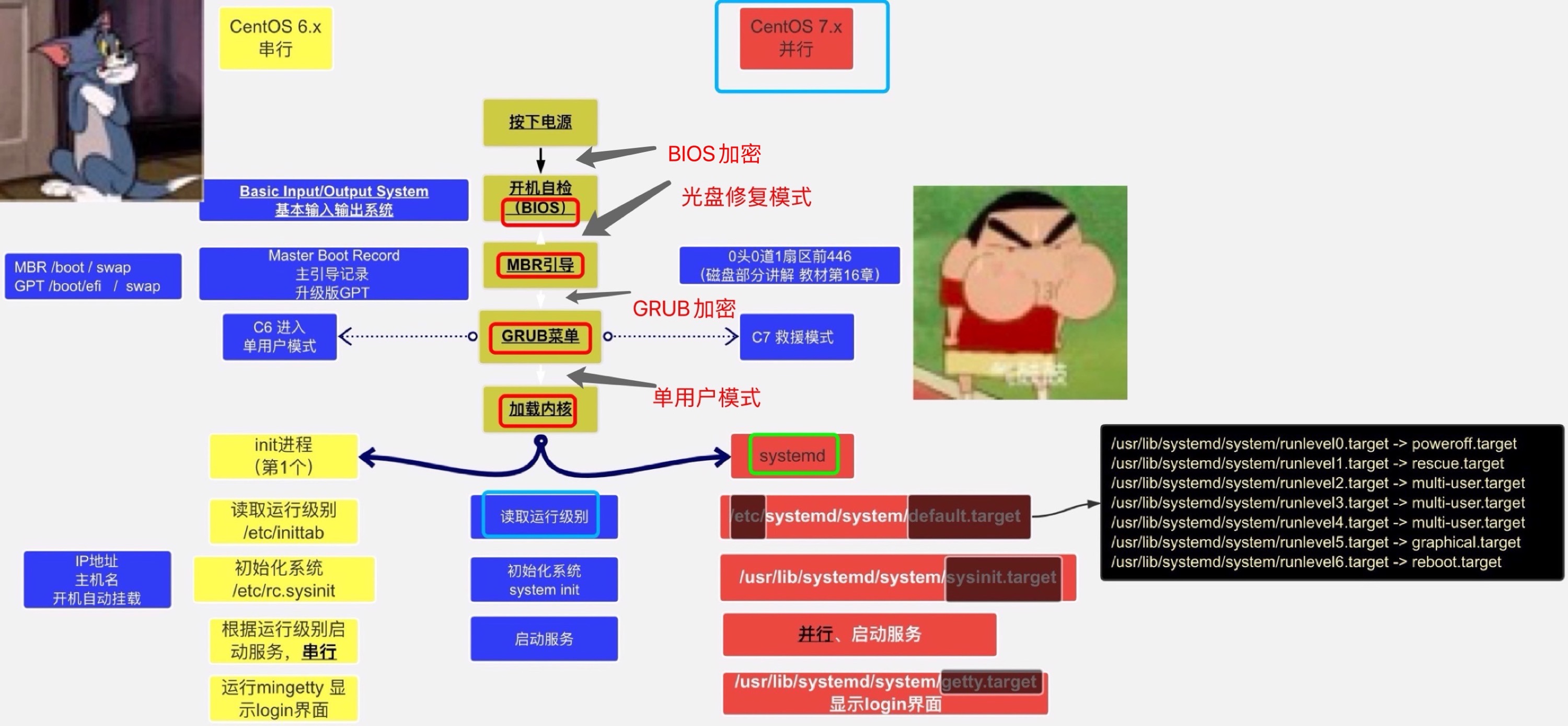 | 可以用单用户模式 修改root账户的密码! | GRUB加密可以防止单用户模式下root密码的修改! |