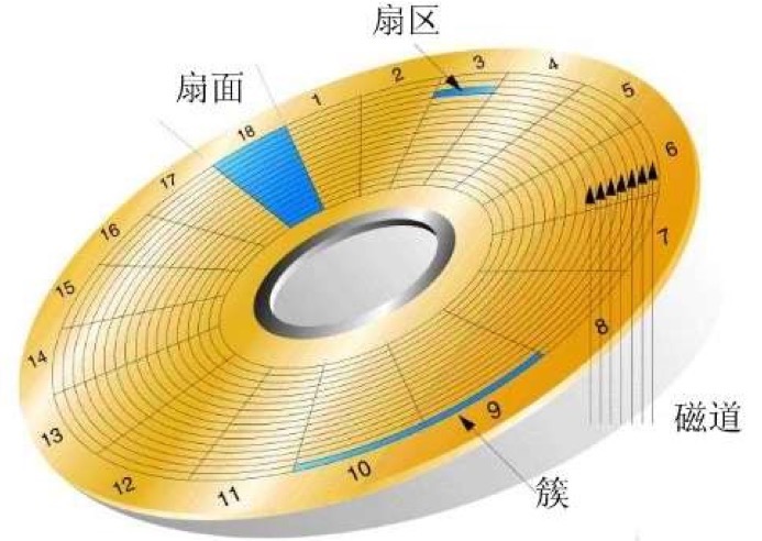 4> 扇区、扇面、簇 :