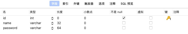 name、password这些数据库字段在User类的命名空间的mappings里放着呢!!