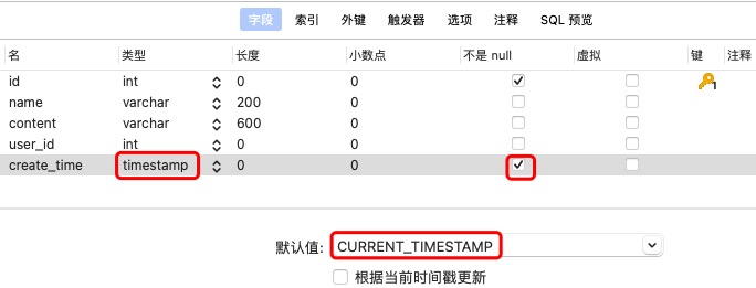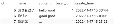 # -- create_time 它会自动填充上, 这里省事就不写啦!