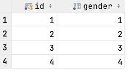 # -- ★★★字段类型根据(1, '男')里第一个元素来决定,这里第一个元素1是int类型!!!
